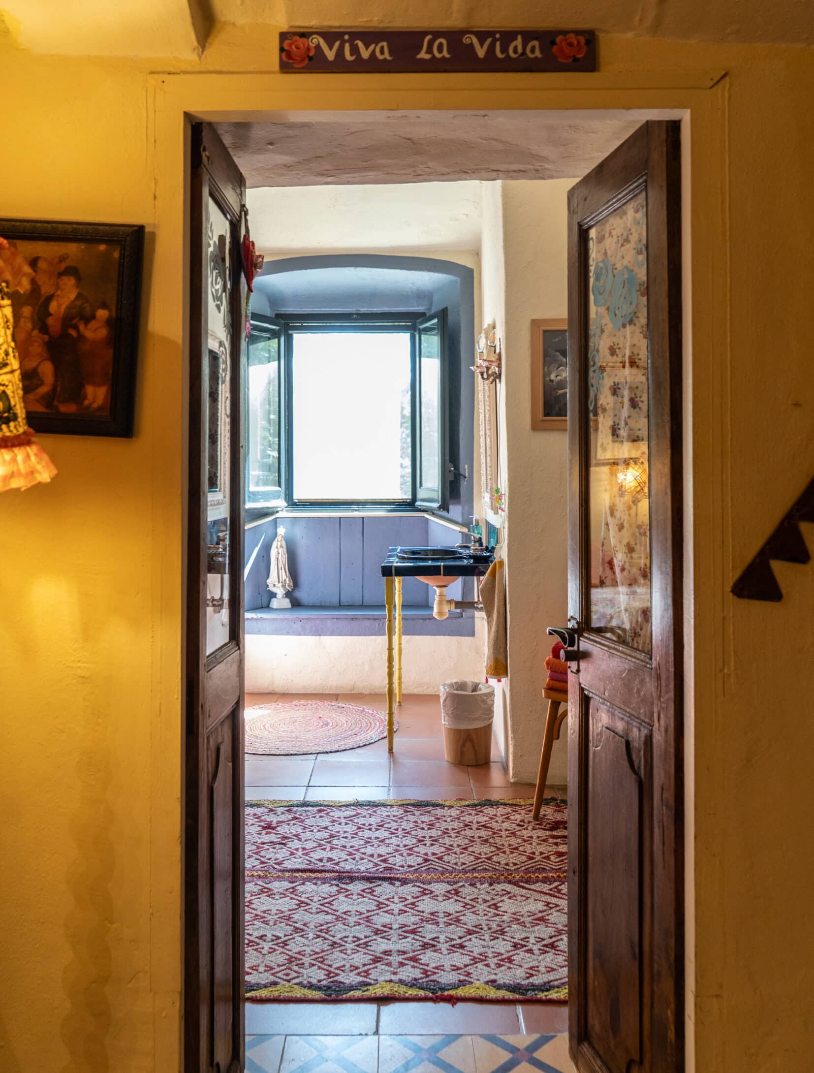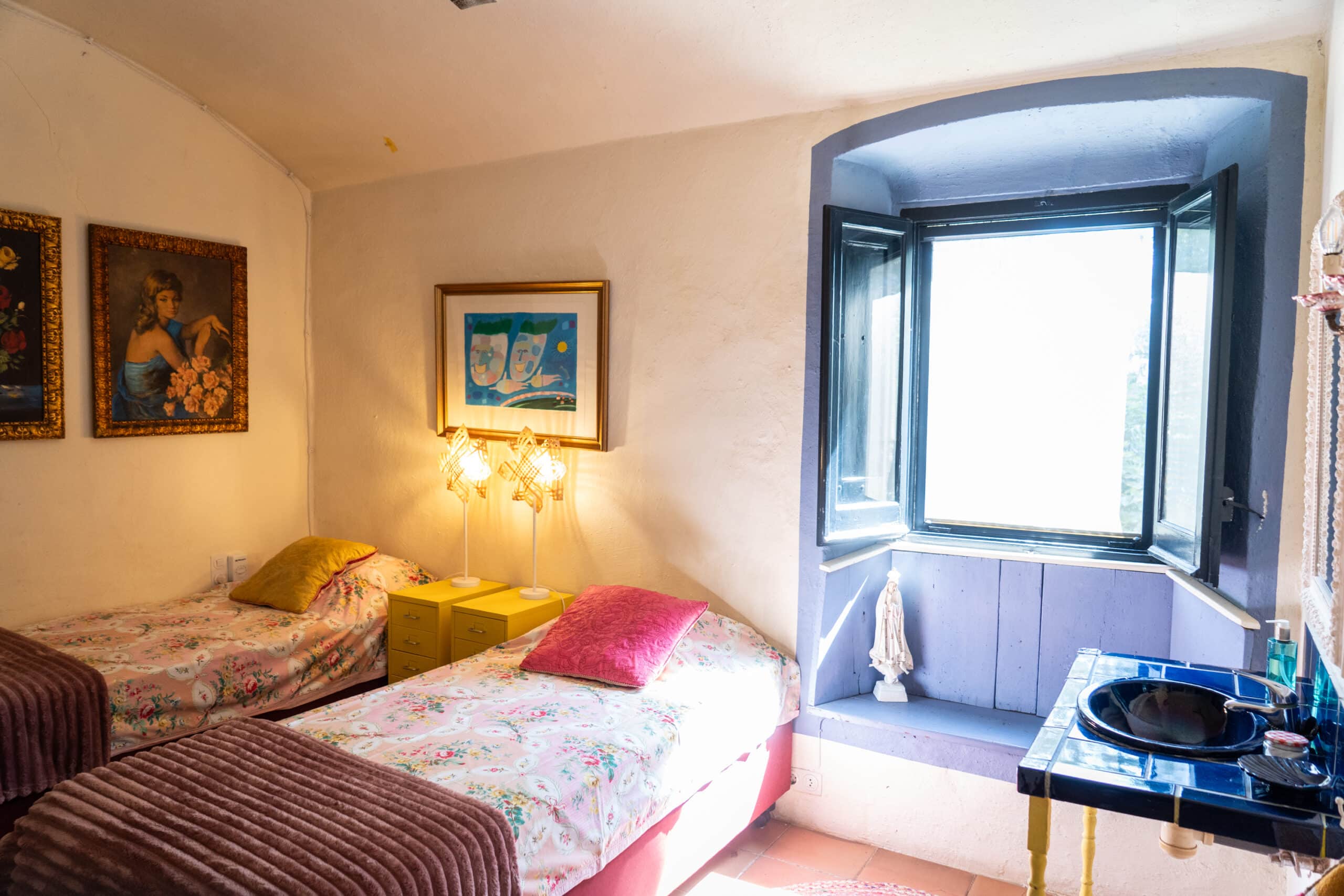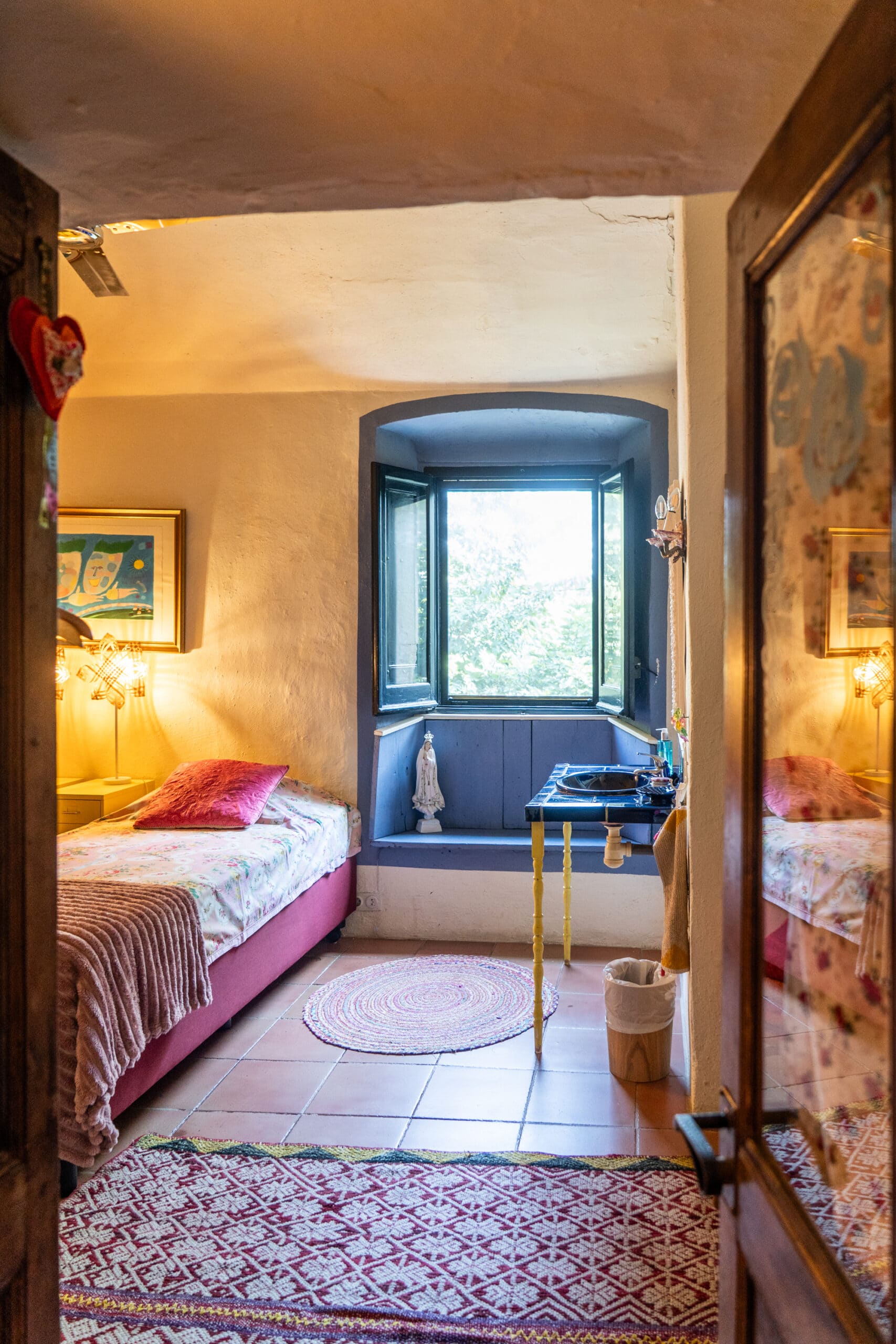 De Heilige Maagd, vernoemd naar het inmiddels gesneuvelde beeldje van de Heilige Maagd dat hier ooit stond. Maar eens een naam, altijd een naam. Een sfeervolle, knusse kamer met wastafel op de kamer, veel licht en uitzicht op onze heerlijke tuin.