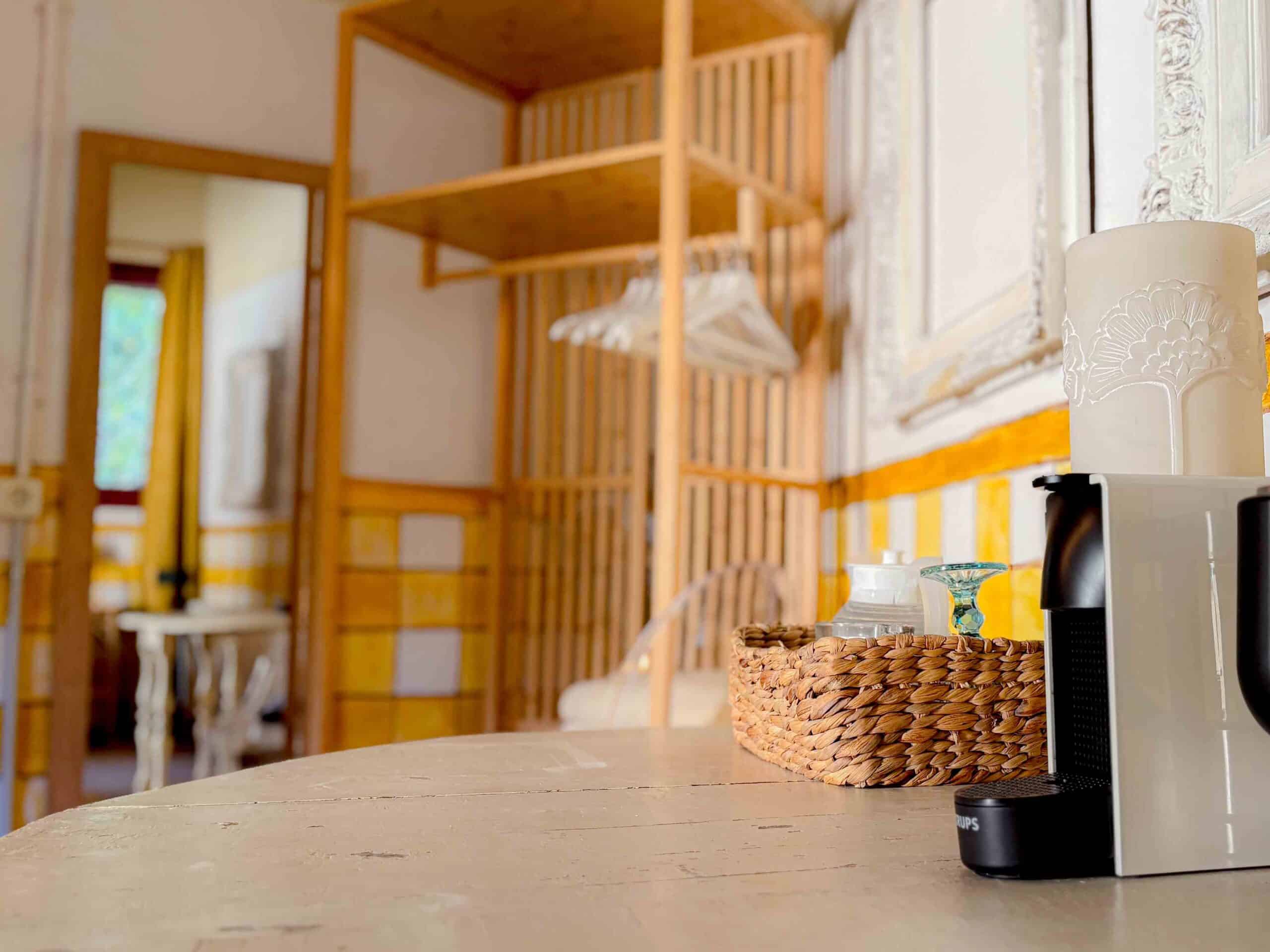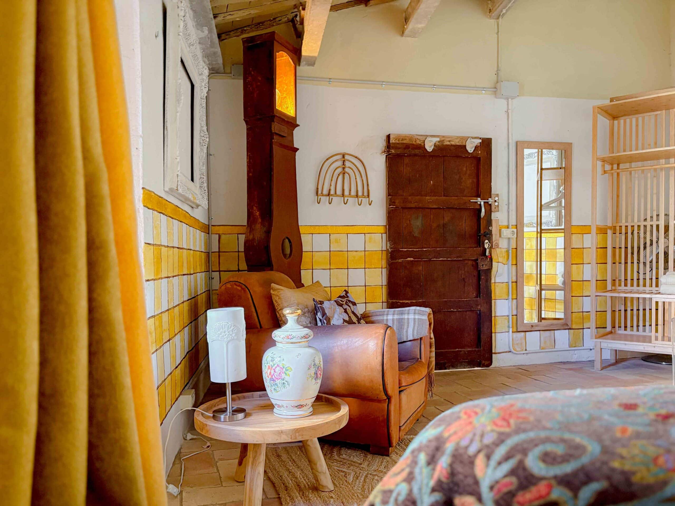 Lola Petit, hier schijnt altijd de zon. Een vrolijke gele kamer met uitzicht op de patio. Kijk goed rond en je zult zien dat niets is wat het lijkt. De kamer deelt een badkamer.