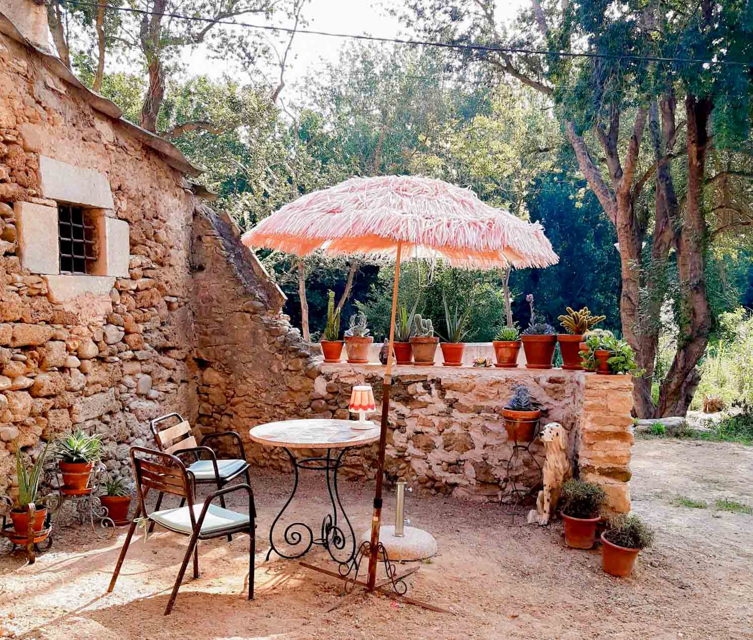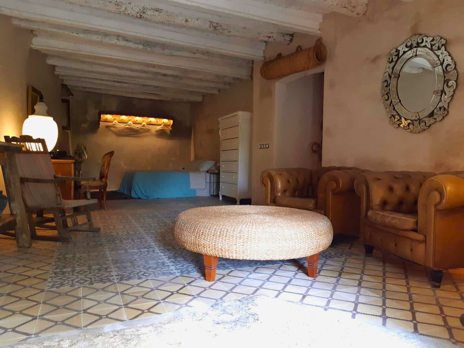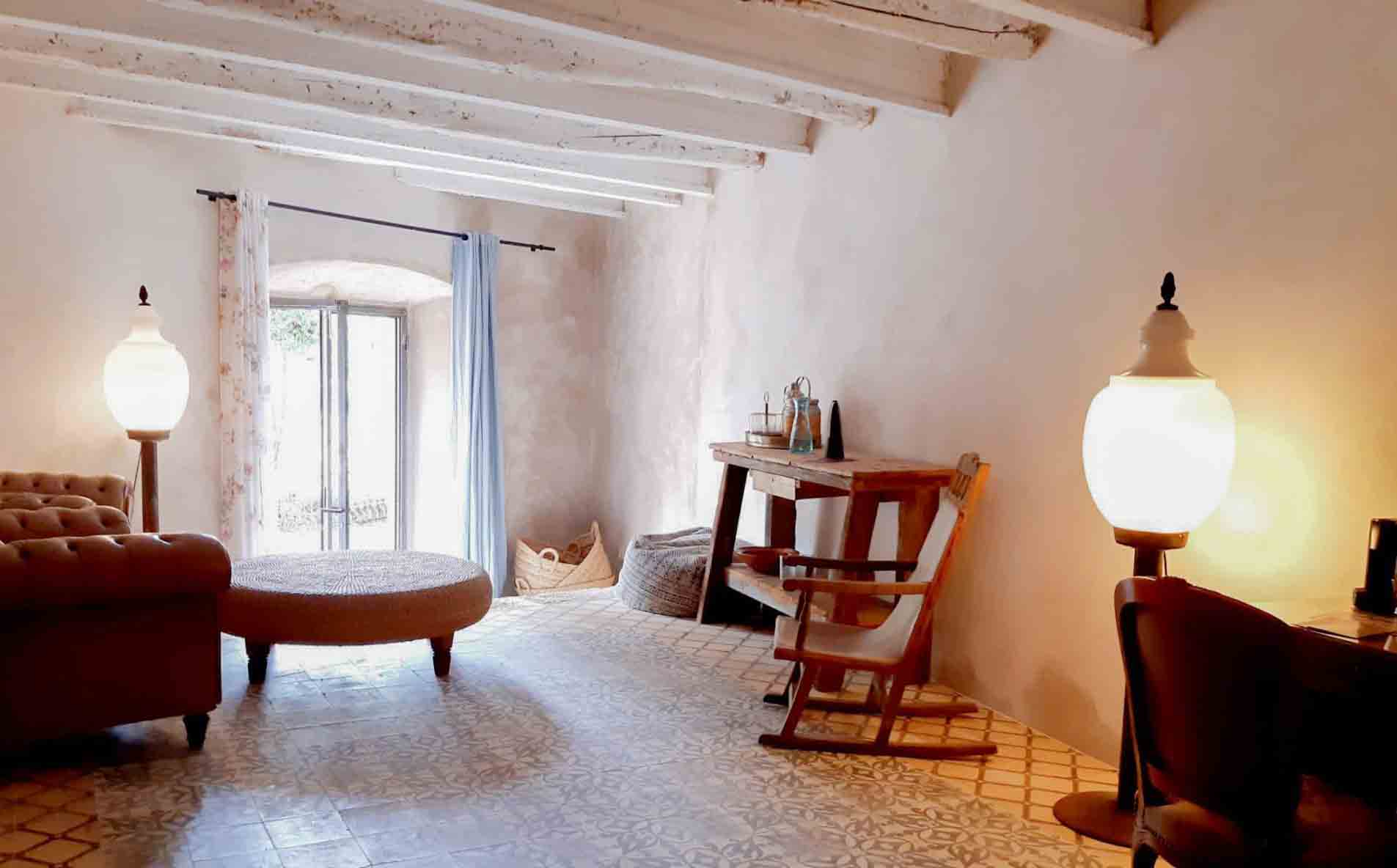Madre Mia, de oorspronkelijke van woonkamer Mas Ferrer Petit, soms omgetoverd tot deze heerlijke slaapkamer. Je kunt hier in je eentje of met z’n tweetjes cocoonen. Er is veel privacy en de kamer is heerlijk koel.